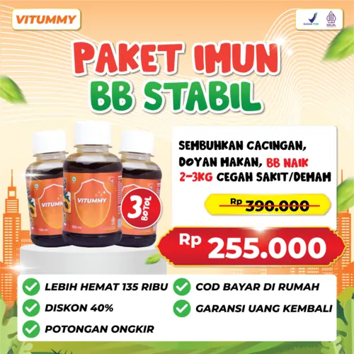 Cukup dengan 2 BotolVITUMMY saja, Berat Badan Naik 3 KG Dalam 7 Hari Nafsu MakanMeningkat dan Bebas dari cacingan.